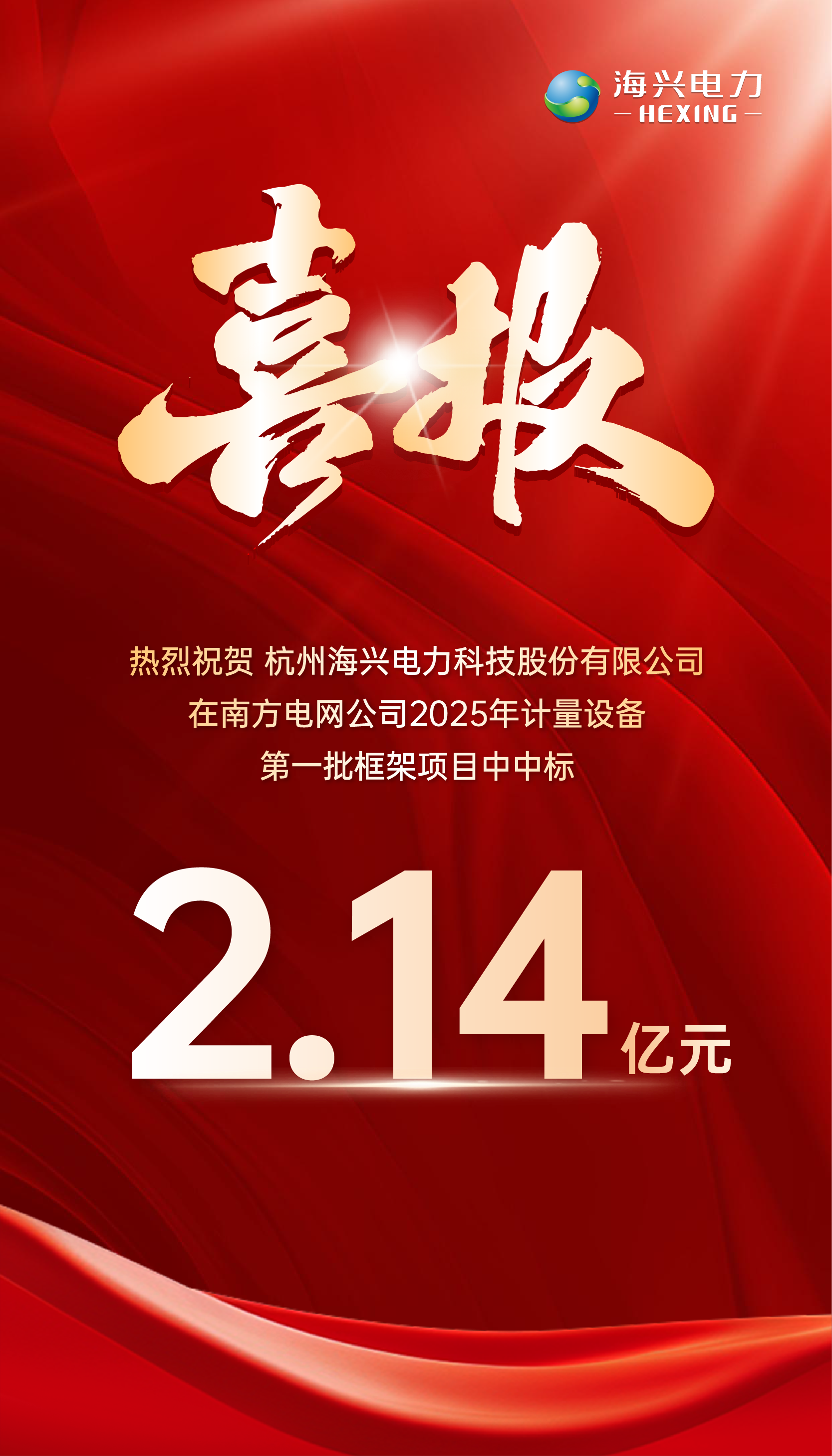 熱烈祝賀杭州海興電力科技股份有限公司在南方電網公司2025年計量設備第一批框架項目中中標2.14億元,綜合排名第六!